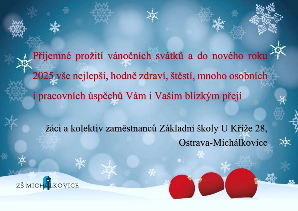 Připomínáme, že ve čtvrtek 9. ledna 2025 proběhnou od 16:00 do 17:00 třídní schůzky formou individuálních konzultací, jejichž čas si zákonní zástupci mohou domluvit s učiteli.
