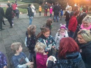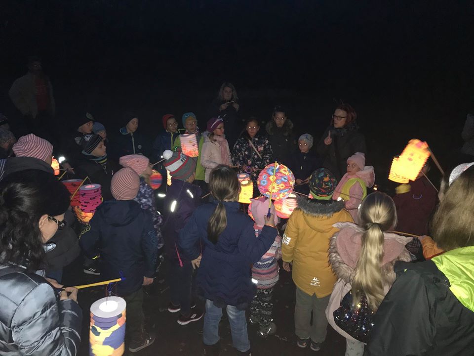 V letošním roce jsme obnovili tradici lampionových průvodů, které pořádala naše škola v minulosti, a které byly vždy příjemným podzimním zpestřením. Průvod k uspávání broučků jsme svolali na pátek 22. listopadu na Michalské náměstí a velký zájem nás skutečně mile překvapil. Naštěstí jsme měli dostatek lampionů. Průvod prošel z náměstí na haldu, kde děti zazpívaly,, zarecitovaly a uspávaly broučky. Zpáteční cestu jsme zakončili před naší školou u teplého čaje a buchet.