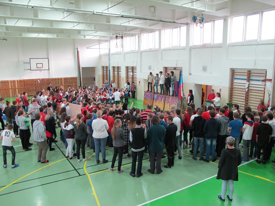 V tomto roce si připomínáme 30. výročí listopadových událostí roku 1989. V průběhu každého školního roku přichází náš žákovský parlament s návrhy na řadu tématických akcí, kterými zpestřuje náš běžný školní život. V listopadu padla volba samotných žáků právě na sametovou revoluci. V pondělí 18. listopadu se proto naše škola oděla do barev trikolory a ve školní tělocvičně jsme se vrátili o třicet let zpět.