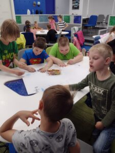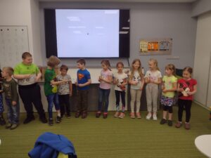Vybrali jsme skupinku 5 žáků, kteří nás zastupovali v další soutěži. Ostatní se nenudili, zapojili se do doprovodného programu, který pro nás byl připraven v podobě skákacího hradu, parkouru, tanečních podložek a dalších atrakcí.