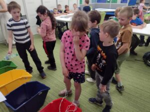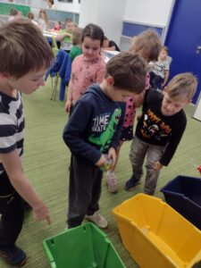 Dne 12. května jsme se vydali do OZO Ostrava, kde na nás čekal program Popelnice v barvách duhy. Hravou formou jsme se učili rozpoznávat materiály a třídit odpad. Zasoutěžili jsme si a plnili zajímavé úkoly, seznámili jsme se s barvami popelnic na třídění odpadu a odnesli si odměny za úspěšnou práci ve skupinkách. Celé dopoledne se nám povedlo.